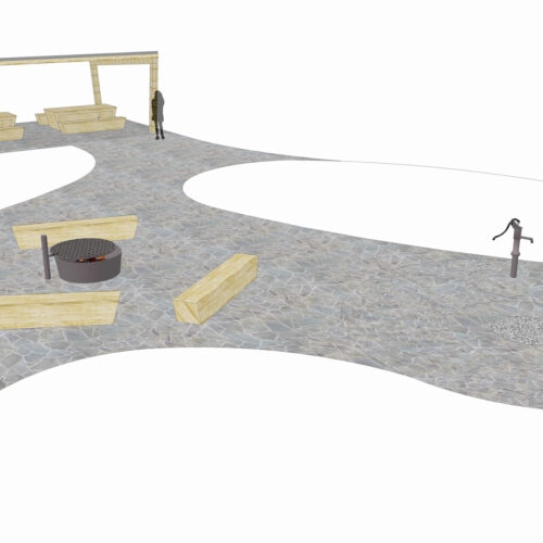 V centrální části prostoru – v „srdci“ Hliníku je umístěná pumpa (napojená na vrtanou studnu), která se vsakuje do uměle vytvořené tůňky. V blízkosti pumpy je umístěné ohniště a tři sedáky. Pro větší pohodlí je v Hliníku umístěný přístřešek se stoly a lavicemi. Ve svahu jsou navržené schůdky z akátových trámů.