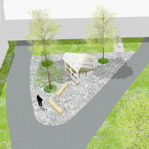 Nově je prostor uchopen jako veřejné místo uzpůsobené k setkávání. Přístup k vodnímu prameni je nově rozšířený a zastřešený. Plocha je nově vymezena odsekovou žulovou dlažbou a doplněna sedáky. Prostor je doplněn výsadbou stromů.
