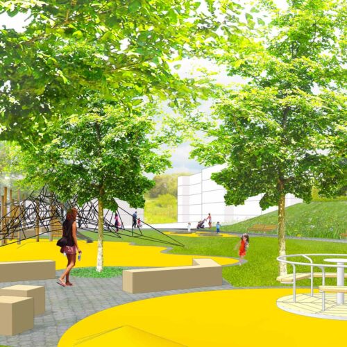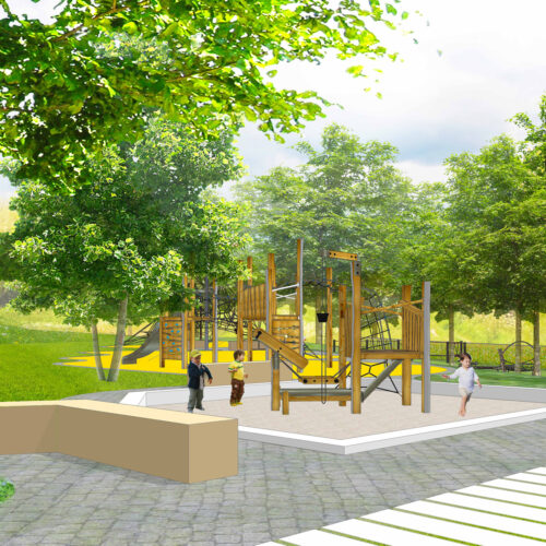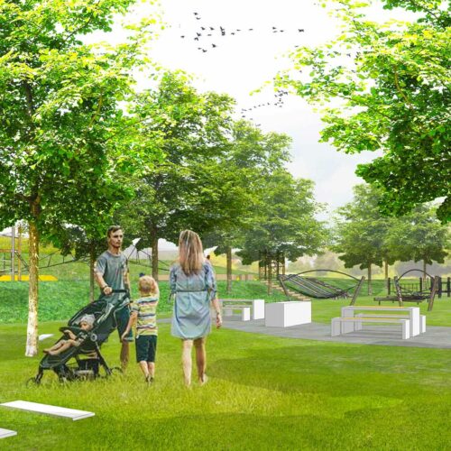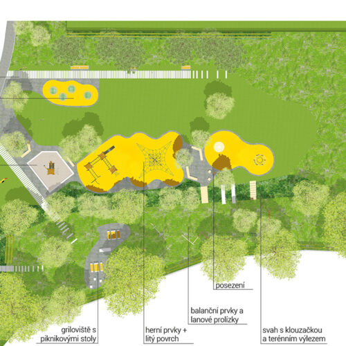 Hlavní myšlenkou návrhu je vybudování prostoru pro rekreaci v přírodě a vytvoření bezpečného prostoru pro aktivní i pasivní odpočinek dětí, dospělých i seniorů. Celý návrh se nese v přírodním duchu s použitím moderních povrchů a prvků.